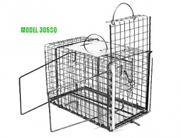 Tomahawk Model 305 is a transfer cage for cats, rabbits, opossums and similar size animals. One end of this cage is a sliding door designed for easy transfer of animals from live traps. This transfer cage matches up nicely with trap model 606 and 606.3.