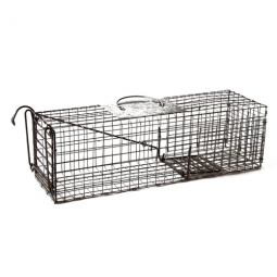 Comstock C81036 Swing Panel Trap features flush mount powered double trap doors. It is designed to capture rabbits, opossums, skunks, cats, and similar size animals. The unique push through pan-less swing panel trigger makes it virtually impossible for an animal to pass through the trap without capture. Spring powered double doors will take animals from two directions when set right side up, sideways, or vertical. It weighs 7 lbs and measures 36L x 8W x 10H. This trap is strong, reliable, durable, and requires little maintenance.
