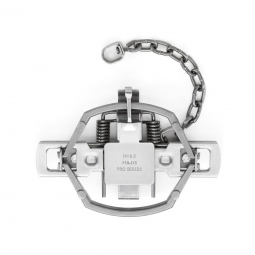 The Duke Pro Series 650 OS features heavy cast steel jaws, stainless steel rod dog with step down PIT pan system, double base plate, center swiveled D-Ring with machine link chain & in-line swivel. Designed for serious coyote trapping, this trap is built rock solid to withstand the toughest conditions out there. 6.75" jawspread.