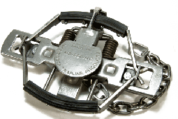 MB-550-RC Rubber Jaw Trap for coyote, bobcat, fox and raccoon. The 550-RC has an outside jawspread of 5 1/2" and an inside jawspread of 4 3/4". Pan tension out of the box (un-waxed) on this two coiled version runs an average of 2.1 pounds which has been found to be very good for a multi-species trap. SINGLE TRAP