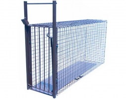 Safeguard Dog/Bobcat trap with a Front Release. This trap measures 42"L x 15"W x 18"H. Great for capturing small dogs, large cats, fox, coyote, and bobcat.