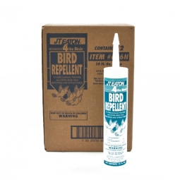 4 the Birds® Bird-Proof Transparent Repellent Gel by J.T. Eaton in 10 oz. tubes.  Treat window sills, roof lines, gutter edges, signs, ornamental copings, cornices & ledges. For repelling pigeons, starlings, and house sparrows from buildings and adjacent structures. 4 the Birds Transparent Gel is easily applied with a caulking gun or putty knife and is weather resistant for lasting outdoor application. All surfaces should be cleared of dust, dirt, droppings, and loose debris before treatment application. A second treatment may be necessary if flattened by heavy bird traffic. 4 The Birds Gel will not harm birds when used as directed.