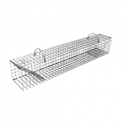 Model 205C is a collapsible colony trap for muskrats. This trap measures 36" x 8" x 8" and is constructed of 1" x 1" - 14 gauge wire mesh. These collapsible colony traps feature two swing down support bars that give the trap extra durability when set up and also hold the trap down in the mud.