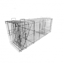 Tomahawk Model 210B is a collapsible live trap for average to large dogs, coyote and similar size animals. These traps are simple to operate, can be folded flat in just a couple minutes, and set up just as quickly with no tools required. This cage trap weighs 55 pounds and measures 60L x 20W x 26H. It is constructed of 1"x1" - 12 gauge galvanized wire mesh.