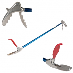 - Strong cast aluminum handle, lever, and extra wide tong jaws