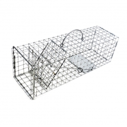 The Tomahawk Model 603SS-F is our Professional Series squirrel sized trap featuring a flush mount trap door and easy release rear door. Flush mount doors allow for positive sets which means when the trap is armed the door does not extend out past the trap frame. This allows the trap to be set flush against den openings on vertical surfaces. When the target animal exits its den, it must enter the trap. This trap measures 21L x 6W x 6H and weighs 4 lbs. It is constructed from 1/2" x 1" 14 gauge galvanized wire mesh for superior strength and durability.