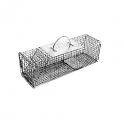 Model M30H is a flush mount double door repeating catch trap. It is designed to capture upwards of 10 small rodent sized animals per setting. This includes animals such as small squirrels, chipmunks, gophers, and rats. The unique push through one way door makes it easy for animals to enter and impossible for them to escape. This trap features two spring powered 3" wide double doors and a 5x5 flip open release door. It weighs 5 lbs and measures 24L x 24W x 4H. This trap is made from 1/2 x 1 - 14 gauge galvanized steel wire and is strong, reliable, and requires no maintenance