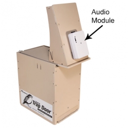 The Audio Module for the Sparrow "Trap Door" bird trap lets you add a proprietary sparrow song which has proven to attract more birds. The call operates on an intermittent basis so birds don't get used to it. There are ten different programs to choose from. The Audio Module is powered by three AA batteries (included) which will last 4-7 days.