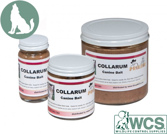 Collarum Canine Bait (CCB) causes an excellent "bite & pull" response from all canines, which is necessary for activating the Collarum. Originally developed as an M44 bait, CCB also is an excellent performer at grub stakes, walk throughs, and dirt hole sets. As an added bonus we have found this canine meat-based food bait to be an excellent spring skunk & raccoon bait. Don't let the name fool you, CCB is the Original "Grab & Pull" bait and is a bait which all canines find extremely attractive, and aggressively pursue, no matter what the set or circumstance.