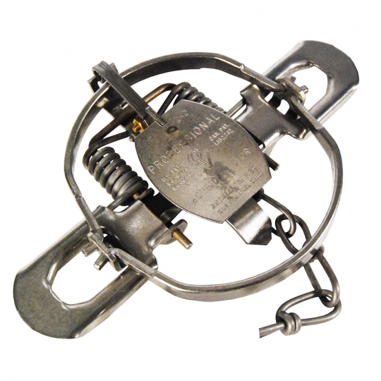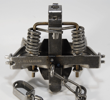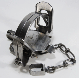 Oneida Victor #1.75 Standard Jaw, Double Coil, has a 5 3/8" jawspread, adjustable pan, center chain with swivels. This trap can be used to capture badger, bobcat, coyote, fox, lynx, nutria, opossum, raccoon and skunk.