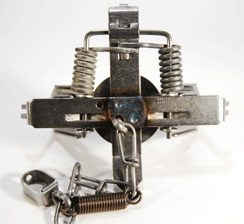 #3 Oneida Victor Slight Off-Set (SOS) Softcatch, Double Coil trap, specifically designed to humanely capture coyotes and similarly sized animals. This trap has a jawspread of 5 15/16" which is perfectly suited for coyote captures. The jaws of this trap are covered in a non-hardening rubber and can easily be replaced. This trap is purposely manufactured with slight off set jaws. It has an inline shock spring and a swivel on the end of the chain to aid in anchoring.