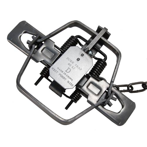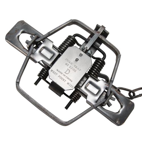 Duke 1 3/4 Double Coil, Offset jaw traps have a 5.25" jawspread and are made for capturing Bobcat, Coyote, Fox, Raccoon and similar sized animals.