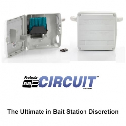 The PROTECTA EVO Edge is a versatile rodent bait station that is easy to use and service.  The station opens and locks quickly with Bell's EVO key.  The built-in service record card holder, side-opening design and rounded interior walls make servicing fast, maximizing technician productivity. The station has a large bait capacity holding up to eight 28 g or four 225 g Blox securely inside the station and comes with vertical securing rods.