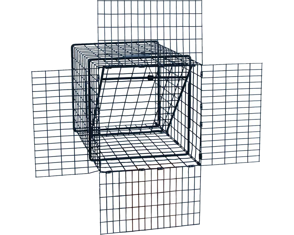 Introducing the WCS™ "OWDE" one-way door, exclusion device. It measures 8"H x 8"W x 14"L and is made entirely of 1" x 1/2" mesh. This flush-mounted device is designed to mount easily and features a spring-loaded door. Raccoons can get out, but they're not getting back in!