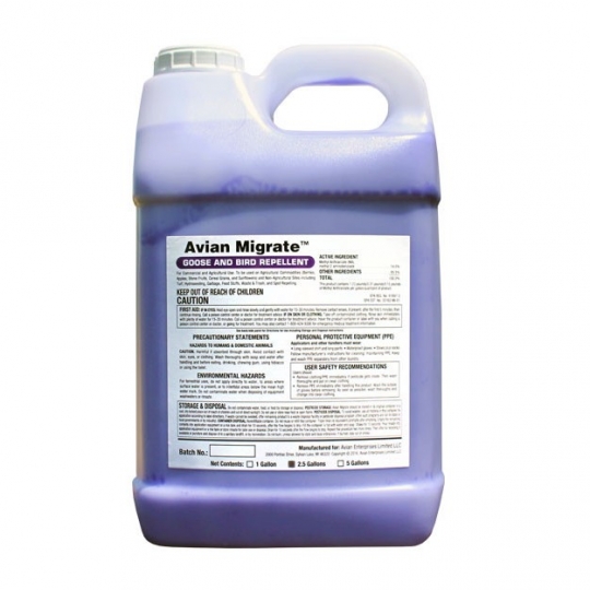 Avian Migrate™ Goose and Bird Repellent is a non-lethal liquid bird repellent that discourages geese and birds from congregating on golf courses, parks, athletic fields and around public buildings. Simply spray as directed - the effect is immediate and long lasting. It returns your grounds and environment to their naturally beautiful, clean condition.