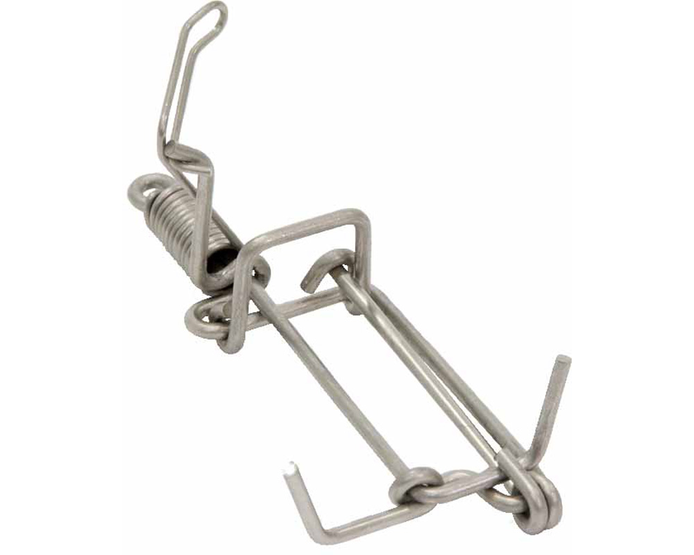 The Molelinator is the smaller version of the Gophinator developed in California. This stainless steel trap is set completely underground in a mole's tunnel system. The Trapline Mole Trap is made in a "standard" and a "large size", with the larger size trap having a jaw spread about 1/4 inch wider than that of the standard size trap. Other than this one small but important difference, the two sizes of mole traps are identical in all other regards. The large size is not more powerful than the standard size, as the spring tension on the two traps is identical. The standard size is the preferred size for trapping moles in most of the USA. It is the preferred trap for the Eastern Mole and Star Nosed Mole species that inhabit the eastern USA and the Midwest, as well as the Broadfooted Mole in California and the Coast Mole of Oregon and Washington. The large size trap is the preferred trap for use on European Moles found in the UK and throughout continental Europe. Many users from Michigan, Ohio, and Canada have reported better success with the large size trap, as those geographic regions seem to have relatively large moles. Finally, regardless of your geographic location, if you are trapping moles in very sandy soil(which can be a challenge), you may do well to give the larger size trap a try. The jaw spread of our mole traps as measured on the outside of the jaws when trap is in set position is as follows: