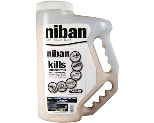 Niban Granular Bait is the best professional grade, all-around bait for targeting the two most prominent invading pests you deal with: cockroaches and ants. Niban's new formula includes a tougher, weatherized granule that lasts longer than any other on the market providing a more effective kill between quarterly visits. This is the industry's only granular bait with the power of borates and our patented formula. It was formulated with a concern for the environment, it's easy to use and it has produced amazing results since it was created. Niban targets a wide spectrum of pests and can be used both indoors and out. Packaged in 4lb containers.