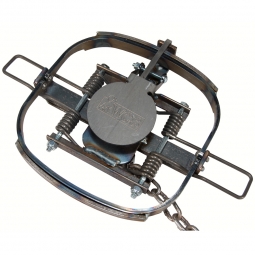 The WCS™ PRO-7.5 Standard Jaw Trap is a great foothold trap for beaver. As the name implies, the PRO 7.5 has a 7.5" jawspread when measured including the jaw thicknesses. The PRO 7.5 has four powerful coilsprings and wire levers which makes it extremely fast. It has a custom pan system with a extra heavy dog with a dimple, so when you pull the pan into position you can hear an audible "click" ! The PRO 7.5 comes baseplated with a D-ring on the bottom with 6" of #3 machine chain, and a universal swivel for ease of anchoring or attaching to a drowning wire or rod.