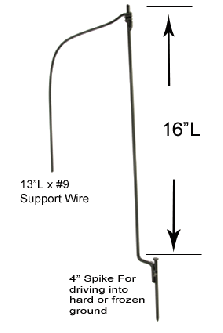 WCS Snare Supports are 18 inches in length and are constructed of 3/16" elevation rod with a piece of flat stock welded on the end to be pushed into the soil for stabilization. They have 18 inches of #9 annealed wire for easy snare connection and positioning.