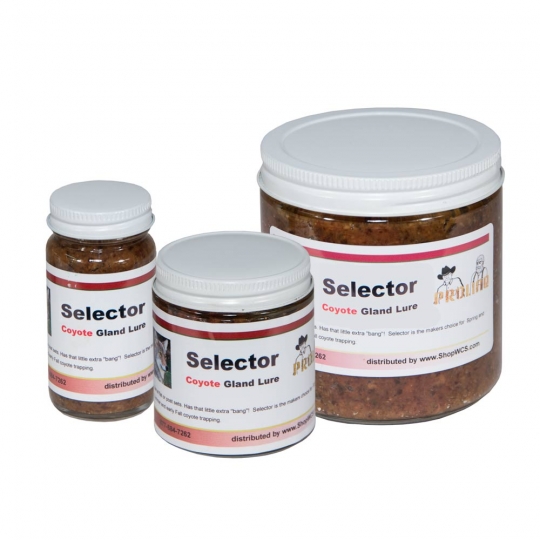 Selector COYOTE by Proline Lures - A premium coyote gland lure for Coyote. Use at flat or post sets. Has that little extra "bang"! Selector is the makers choice for Spring and Summer and early Fall coyote trapping.